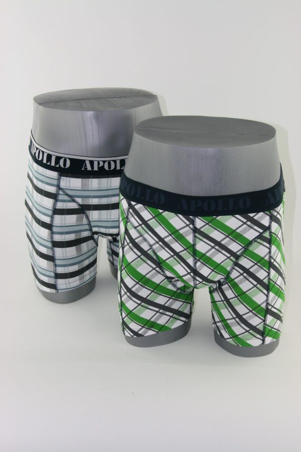 2-pack van twee Apollo Heren Boxers 95% katoen & 5% Elastan XS Kleur: Groen, wit, zwart en grijs.